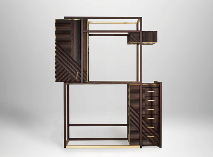 凭借其功能性设计,这款灵活的复古风格橱柜营造出简约的几何形状,并在完整空间和空间之间实现完美平衡 典型的表面处理采用交织的橡木编织,手工打磨和涂漆,具有极佳的视觉冲击力。