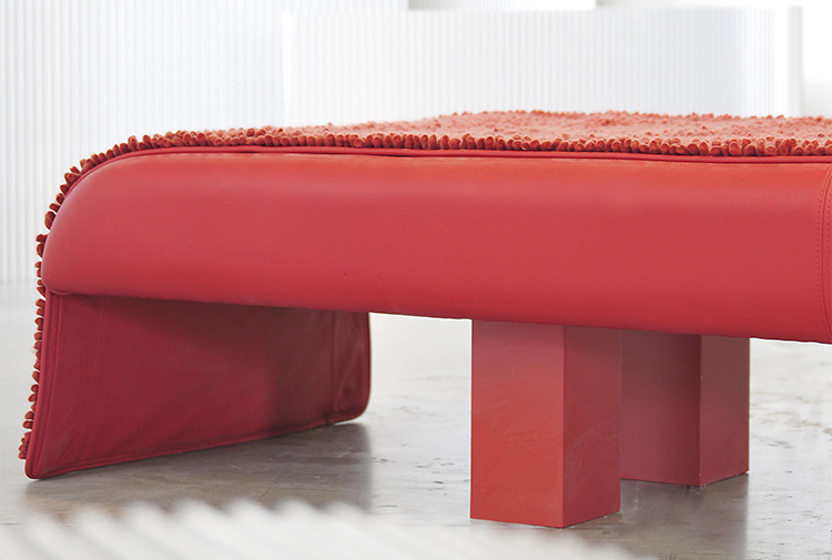 奇特的红色Tappeto Volante长椅采用哑光漆实木结构,膨胀的高容量和变密度聚氨酯填充红色皮革覆盖和上垫覆盖在可拆卸的羊毛内衬。