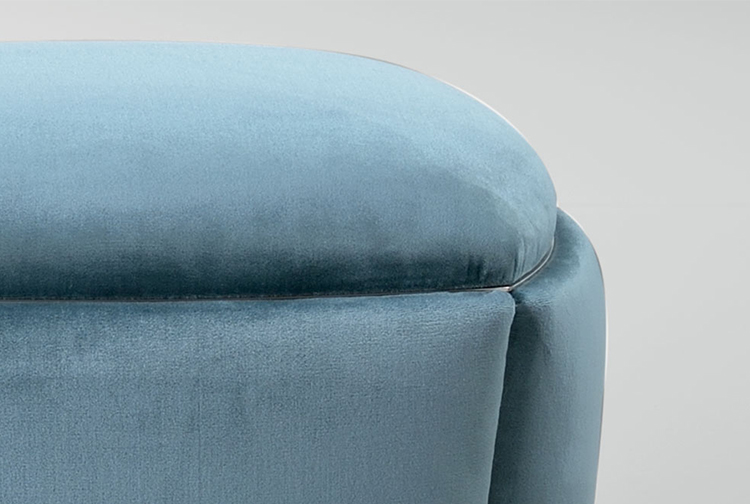 FRAME/SEAT Wood padded with Polyurethane and Fiberfill. Polished steel profiles or covered in coordinated fabric or leather