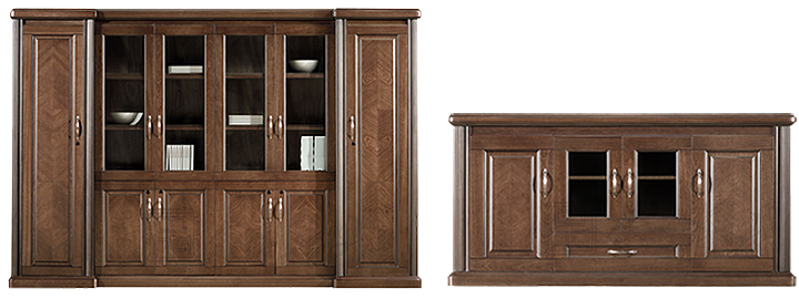 ※ 上图为配套矮文件柜和茶水柜展示,木析纹理和质感表现得更为淋漓尽致,色泽自然,配有不锈钢拉手,款式时尚而不失端庄,可以有多种颜色参考。(文件柜型号:CG-KM3Y06  规格:3040W×460D×2070H  茶水柜型号:CG-K-3Y158规格:1570W×400D×800H)