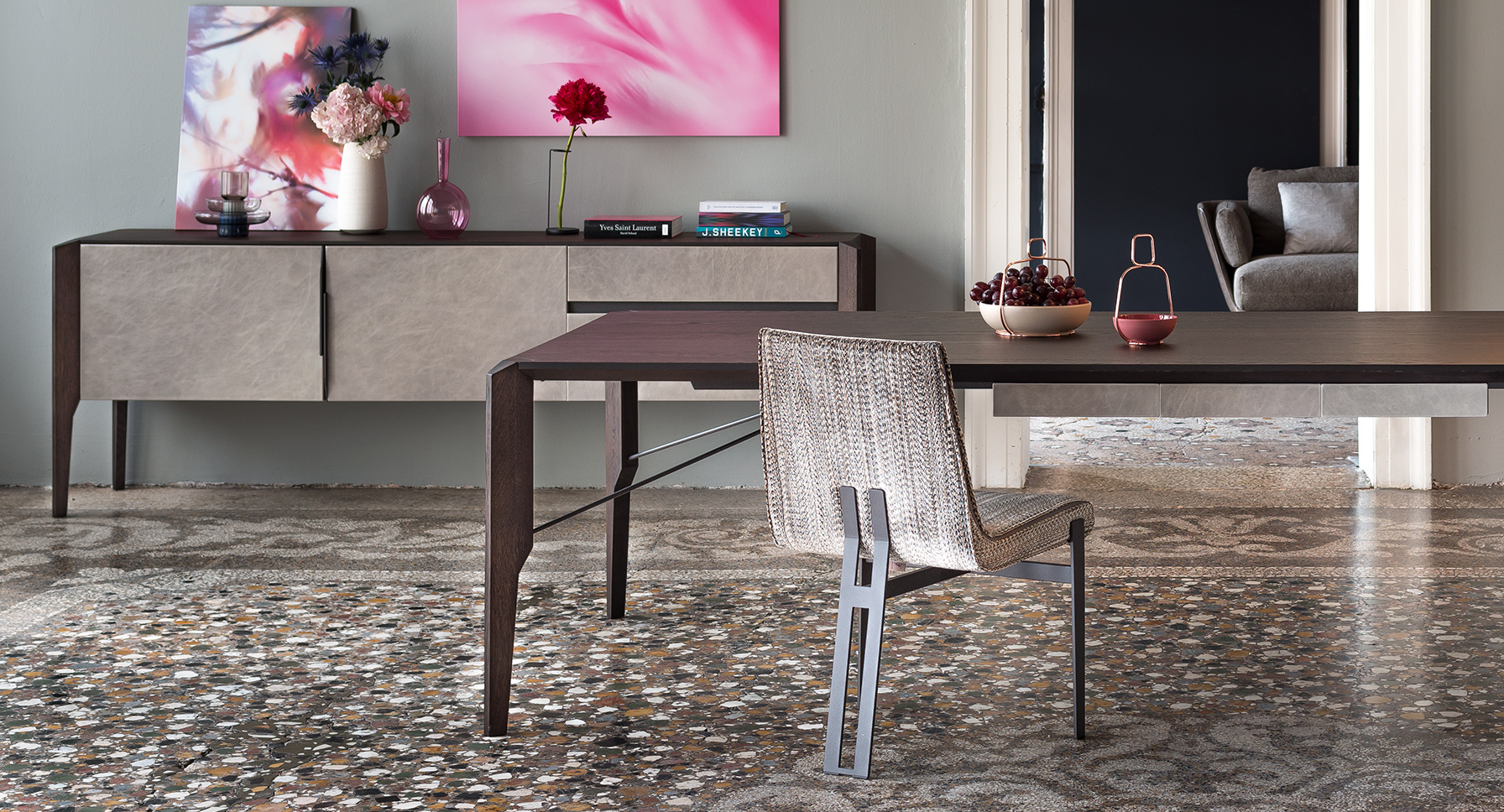 Venus偏离了经典的座椅形状,以诠释和创造一个新的简约同时又严格的风格。三条腿聚在一起,包裹并锁住座椅。金属脚的刚性设计对比于软垫部分的弯曲形状,这两个元素都是独立的,但却完美的平衡了。