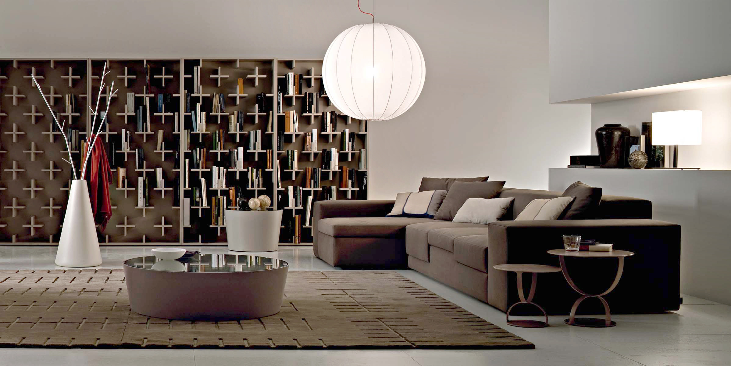 一个简单而优雅的书柜:MDF结构由很多小十字架组成,构成书的支撑。这些十字架看似杂乱无章,但当书被放置在它们上面时,它们从明显的标志变成了一个模糊而又有规律的整体。