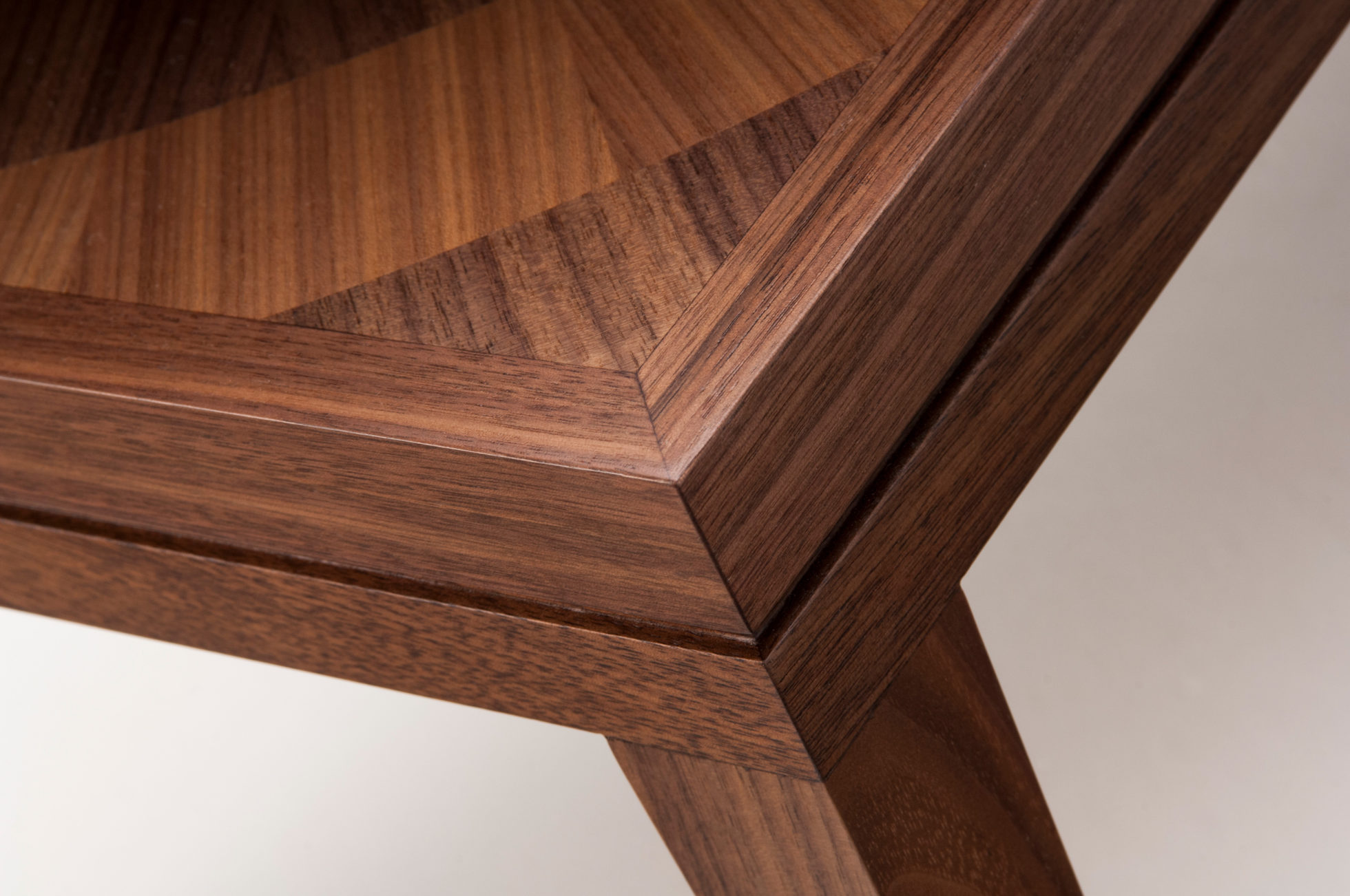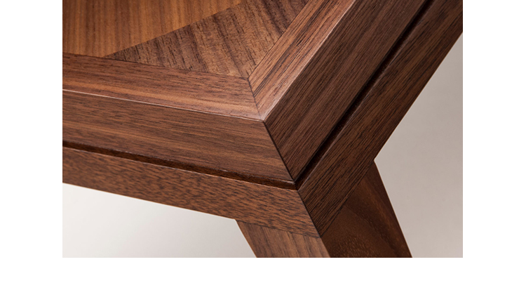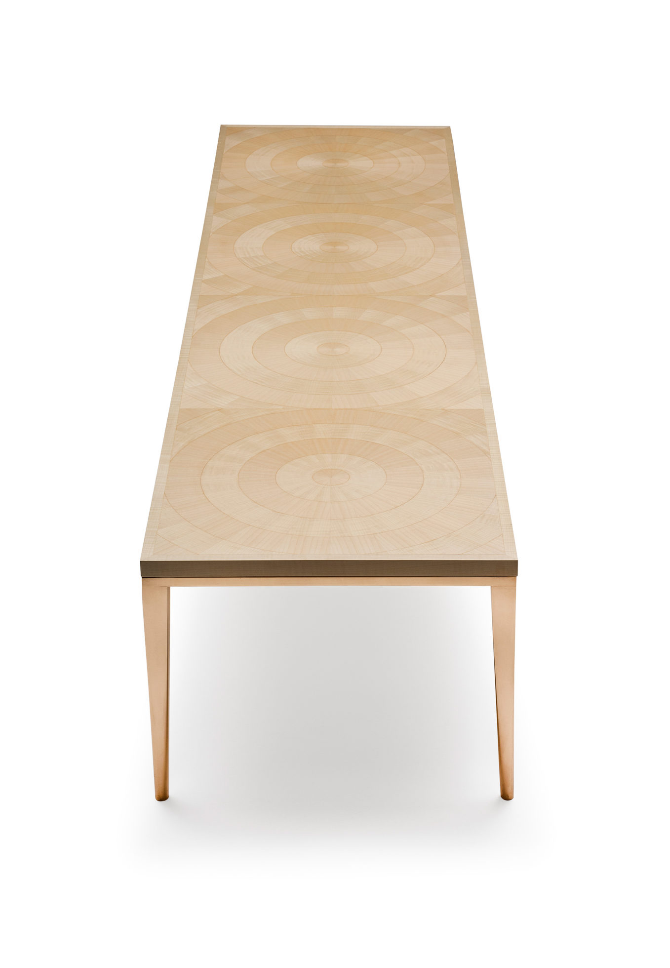 手工铺设的径向同心圆形对比色调和美国梧桐切割在坚实的抛光青铜腿上,这款特别版的Catalyst咖啡桌远远望去,而坐在附近则是错综复杂的美丽。