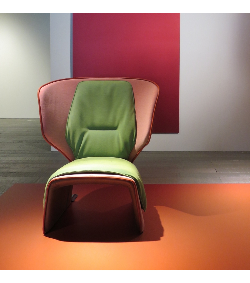 这款独特的扶手椅融合了传统和现代特色。其材料和颜色的组合适合多种用途:内部的软衬垫与外部的刚性元素和谐对话,染色皮革包边装饰突出了弯曲的线条。面料紧贴扶手椅的曲线,与外壳严谨、规整的结构形成对比,有五种不同颜色的标准组合。这款惬意的软包扶手椅的靠背在压力下可倾斜约12°,并可自动地返回到原来的位置,进一步增加了舒适感。结构:座椅和靠背采用钢管框架,并带有固定带。填充:密度可变无氟聚氨酯泡沫。底座:黑漆钢材,端部包覆黑色马鞍皮或闪光皮。软包饰面:布艺或皮革。