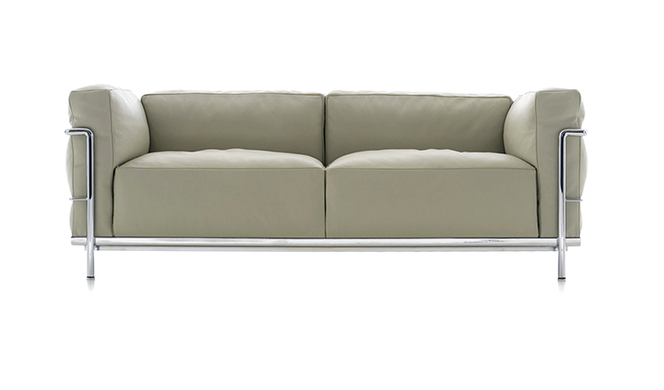 Fauteuil Grand Confort, 又称LC3。采用CR3三价镀铬钢材质或光泽玄武岩搭配灰色、亮蓝、绿色、枣红及赭色或哑光黑色珐琅钢架的双扶手椅和左/右单扶手椅及两人位/三人位沙发。柔软的衬垫采用聚氨酯海绵和喷胶棉或聚氨酯芯羽绒棉。皮革或布艺面料软包;镀铬框架结构可由布艺软包。同样有户外版本。