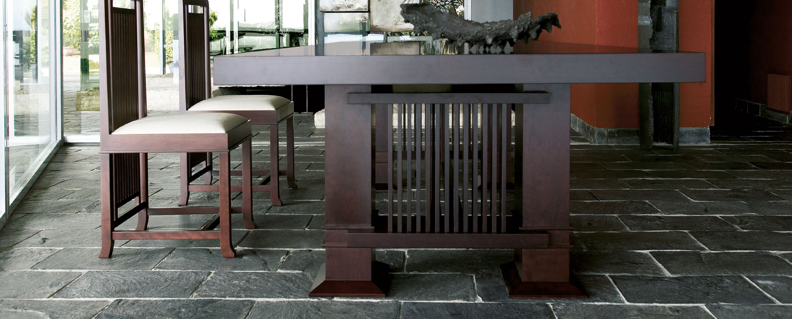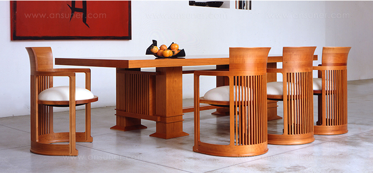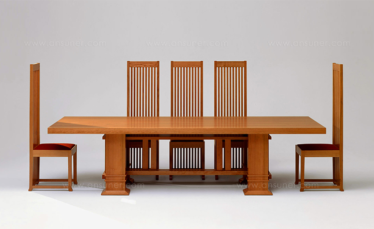 长方桌,采用天然樱桃木或樱桃木色的胡桃木制造。桌面拥有两种不同尺寸可供选择。