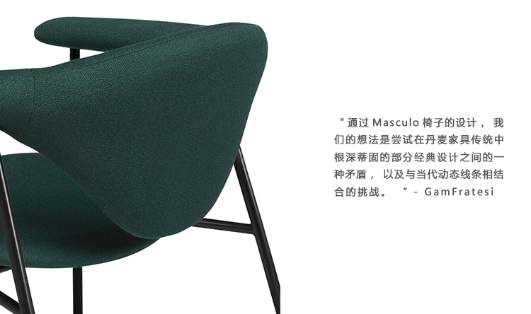 “通过Masculo椅子的设计,我们的想法是尝试在丹麦家具传统中根深蒂固的部分经典设计之间的一种矛盾,以及与当代动态线条相结合的挑战。材料和生产技术的翻译。 我们需要检查会议对部分传统的东西的影响,但在非典型的背景下,并且看起来这种对比的效果,主席应该位于某些在和谐与不和谐的边界地区有趣的地方。“ - GamFratesi