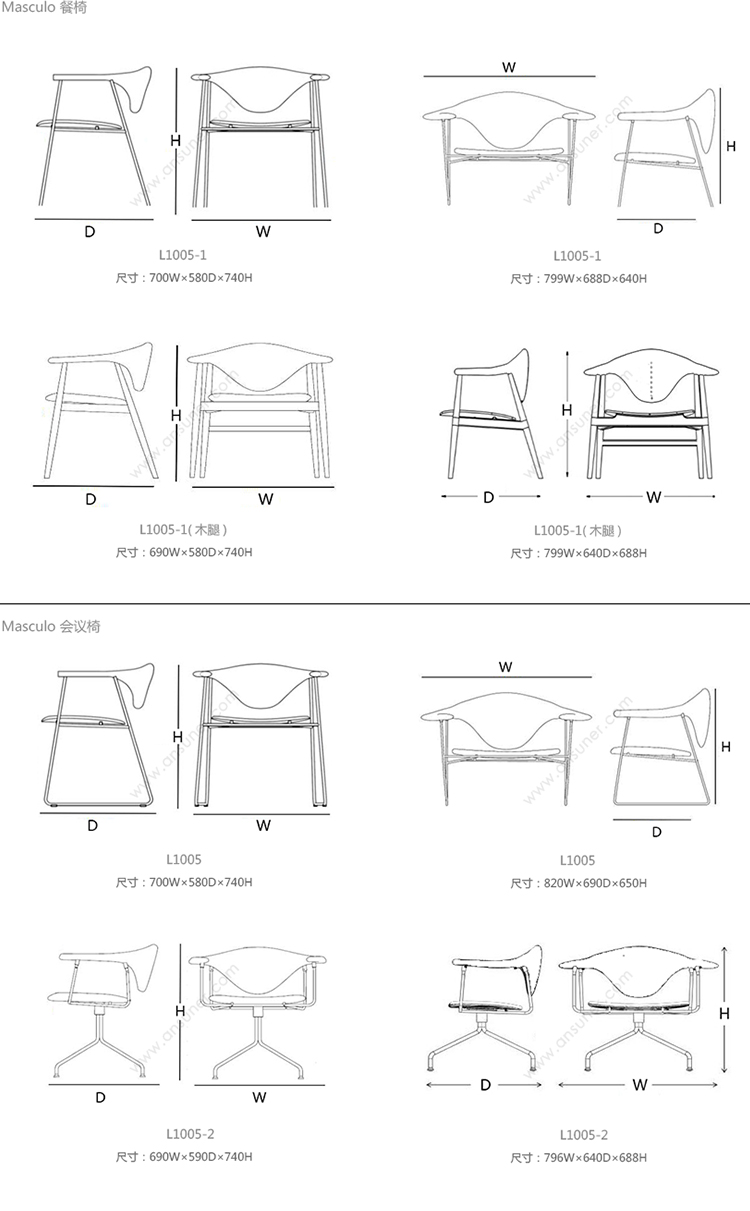 Masculo 餐椅 系列尺寸/示意图