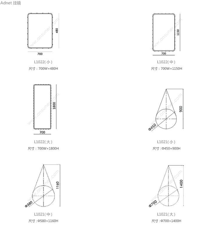 Adnet 矩形挂镜 系列尺寸/示意图