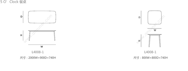 5 o’clock 餐桌 系列尺寸/示意图