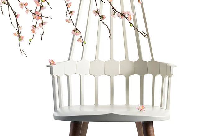 温莎风格椅被冠以乡村风格,但并非一成不变,在不同时期不同阶段又融入新的设计元素。Kartell的这款产品再一次享受重现经典的设计快乐,国际知名家居设计师Patricia Urquiola为温莎椅(Windsor Chair)打造了一个这款新的造型。回归十八世纪英格兰的辉煌时期“梳背”椅的特点,整个框架用亚光材质,靠背的7个分支结构朝着椅腰部位向下延伸,在一个加固六角形圆圈处与纤细的轴汇合,与椅座合为一体。聚碳酸酯材质的使用赋予COMBACK一种轻盈的质感和当代风格。浸透在黑色COMBACK梳背椅里的那一分淡定从容,能让人气定神闲,默默却又不留情面地将浮华虚荣隔在门外。因为不存在彩色光谱里,白色可以说并非真正色彩。纯白色Comback Chair梳背椅,唯美得让人难以抗拒。那种与世无争的清雅,好似刚刚落入凡尘的花瓣,昭示宁静与自然。这款Comback Chair 来自意大利的创新品牌Kartell,以发梳为灵感,回归18世纪英式风格,整齐对称的典雅扮相,表现出一份沉稳内敛的韵韵意涵。木质椅角的运用,让复古气息升华其中。配搭塑料椅身的现代风格特色,不愧为一份跨越历史的新时代作品。荣获2011年Wallpaper设计奖殊荣。
