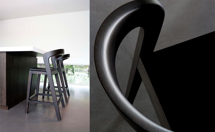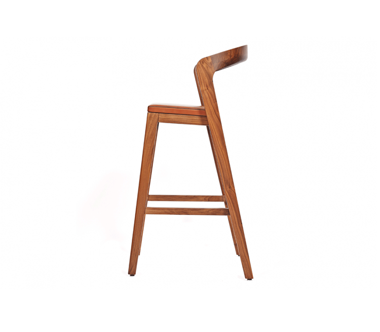 Sustainable,comfortable bar stool.Thanks to its sexy and elegant design this barstool can decorate each kitchen table.The rounded backside operates perfectly as arm rest.The feetrest comes with stainless steel cover.