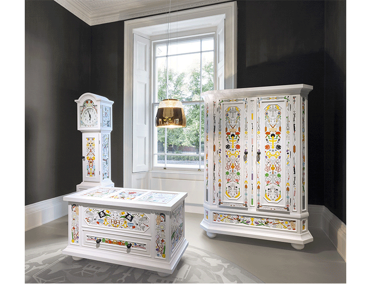 A magic mirror and the power of crystals transform a simple shell into an endless light bouquet of flowers”, Marcel Wanders Valentine’s shiny, refined black, white, gold & chrome shell encloses and frames a meadow of light and sparkling glamour. With thestyle of a precious jewel, Valentine is designed to guard his heart of crystallized flowers, frosted in time. A treasure as perfect anduntouchable as lovers‘ memories. As light and revealing as a first date. As exciting as the initial glimpse of a carefully wrapped gift
