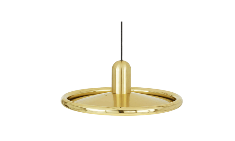 The Tom Dixon Spun Pendant Lamp is an unexpectedly simple brass disc with a fat tubular edge is recast as a minimal pendant lampshade that hints at a Space Age, Deco or Pop Art aesthetic.Acting as a golden reflector for the crown lightbulb, the Tom Dixon Spun Pendant Lamp casts an ambient glow and can be hung in multiples or as a single pendant.