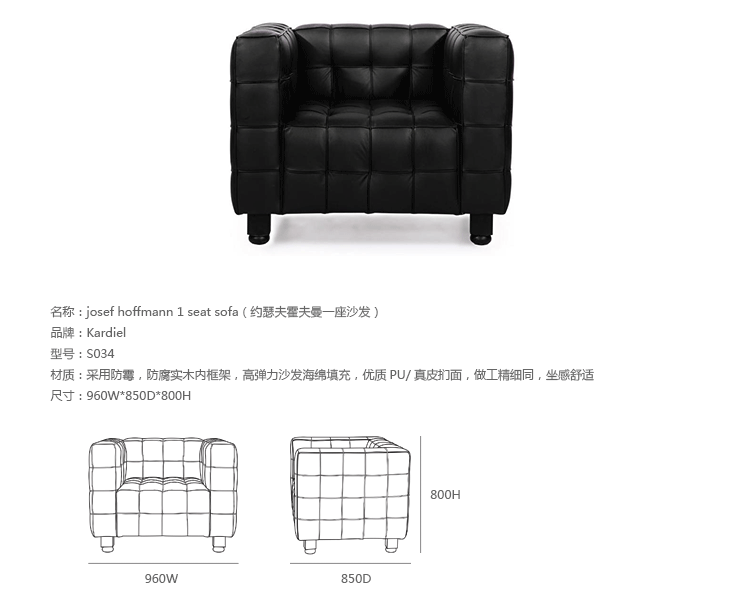 创意家具 - 坐具|沙发|办公家具|设计师家具|约瑟夫霍夫曼一座沙发
