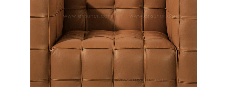 This high quality reproduction of the Josef Hoffmann Kubus Chair features a handcrafted hardwood frame graciously lined with polyurethane foam. The surface is luxuriously soft to the touch,compliments of its premium 100% Top-Grain Aniline leather upholstery. This premium reproduction is generously proportioned to original full-scale size and cube count.Precision stitched & aniline leather piped tactile cubes create a thick body of cushioning that is so comfortable you’ll understand why this sofa has been a modern classic for nearly a century.For those looking for historic significance in midcentury modern furnishings,the Hoffman Kubus is a certain candidate.