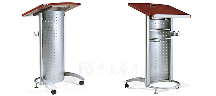 ※  上图为演讲台正面,背面的展示图,宝钢一级冷轧钢板制成,喷涂工艺,面板是实木铁皮面,活动脚轮和固定脚轮组合!