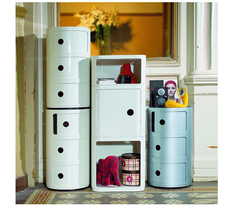 Componibili Storage Module(意大利圆形储物柜)是由意大利著名建筑师安娜·卡斯特利·费里尔(Anna Castelli Ferrieri)作品,以期符合各式室内空间所需的收纳要求。不论是置於卧室、客厅、浴室,或是厨房等。都可以轻易融入空间设计之中,带给您最大的收纳机能。圆形设计,在最小的立足点下,即可轻易摆放。问世近40年以来,已成為极受欢迎的经典设计作品。