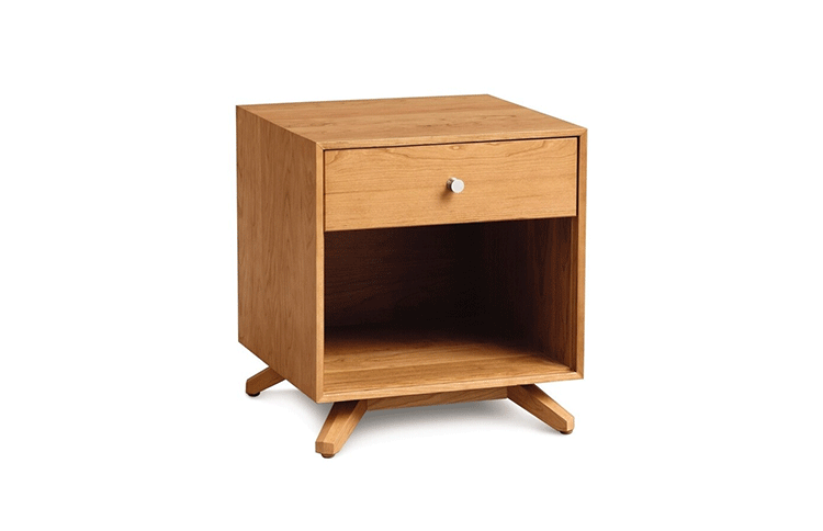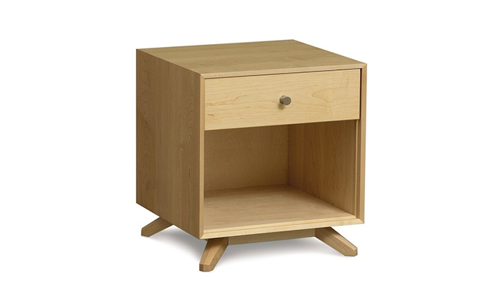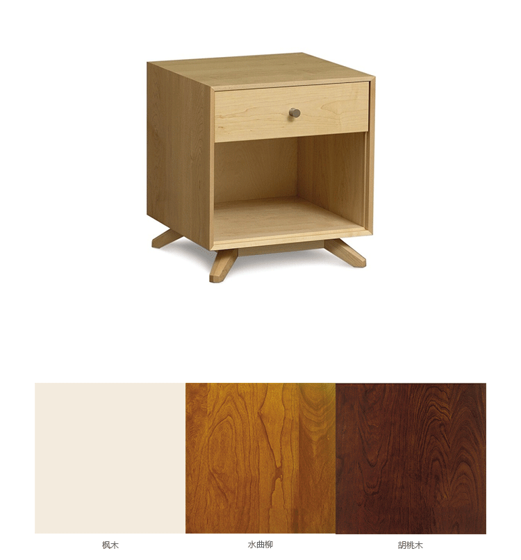 astrid 1-drawer nightstand(阿斯特丽德1抽床头柜)宽大的八字形脚架非常吸引人注目,制作阿斯特丽德1抽床头柜并非易事,它其实是一个大工程,同时能引发无限期望和激情,安放在阿斯特丽德床旁边看起来非常美妙,制作采用精选MDF板基材、进口美洲胡桃或水曲柳或枫木皮贴面、实木脚架、环保净味油漆喷涂、做工精湛,完全对味。