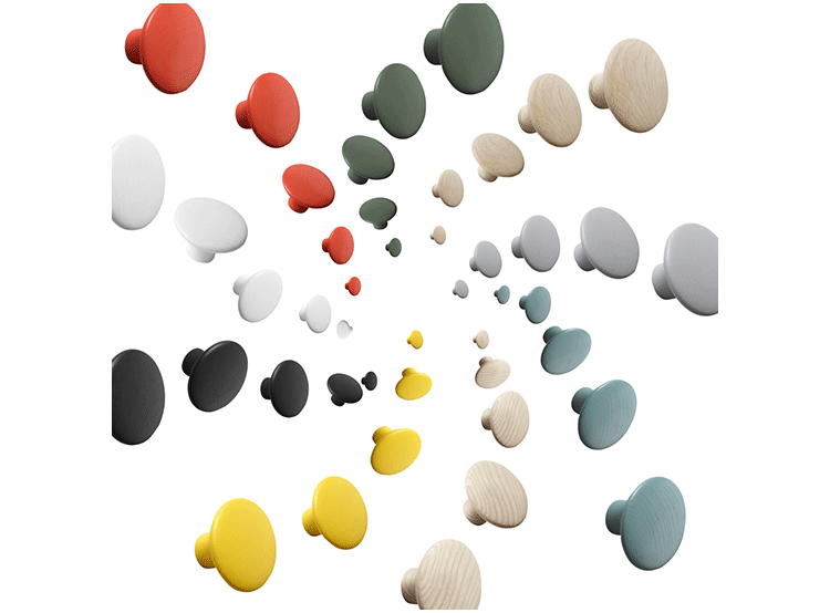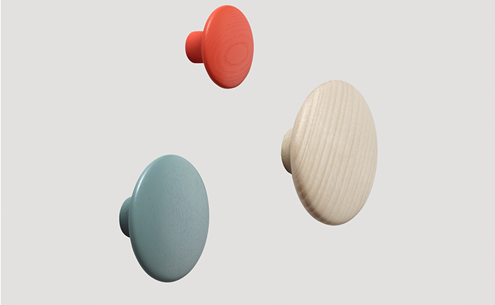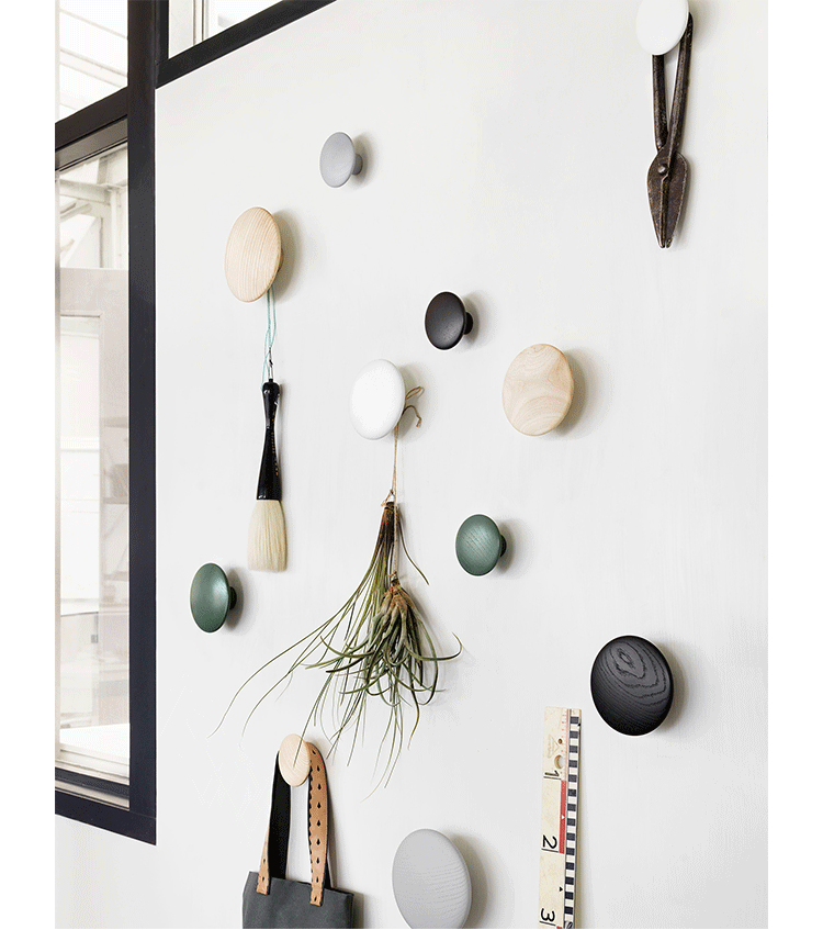 The DOTS,designed by Lars Tornoe,are already a design icon,having introduced a new perspective on the coat hook.Produced from high quality wood,The DOTS sculptured design can be arranged on the wall in exactly the pattern and colour combination that is desired.They are very versatile and can be used in multiple settings,including the entrance hall,bedroom and kitchen.