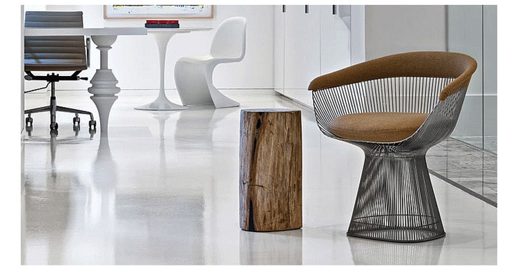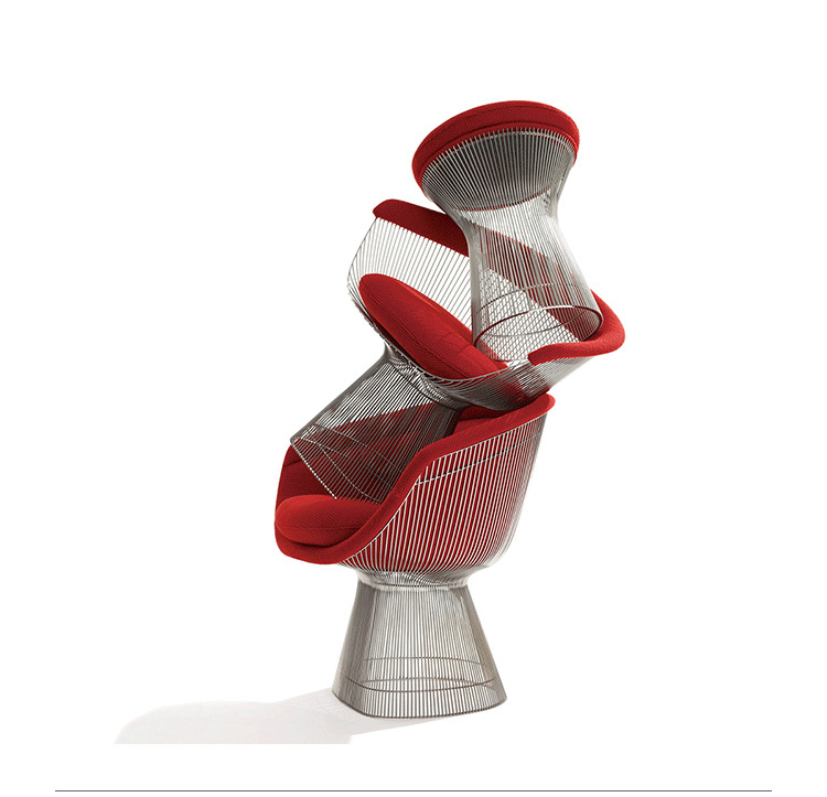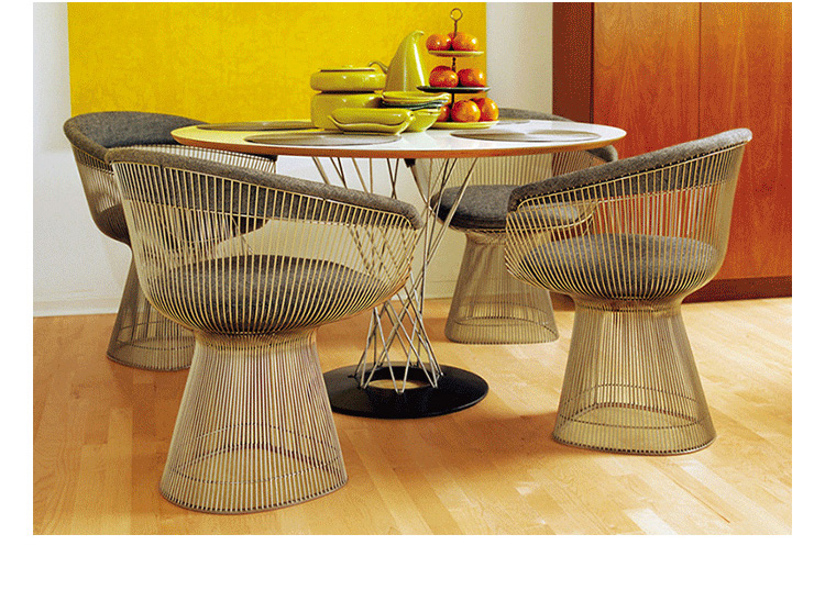 1966年榮獲 American Institute of Architects International Award 美國建築協會國際大獎的 Platner Chair,在設計師 Warren Platner 的創意下,將鋼絲雕塑轉化成一系列收藏級的傢俱,創造了現在被認為是當今時代的設計圖標。