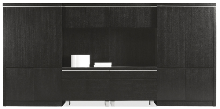 ※ 班台采用黑橡木开放漆,边框带银色油漆边框,双色油漆搭配,方正造型,台面内藏钢架,追求造型简约时尚,也保证了主台的整体结构以及台面的抗弯强度。