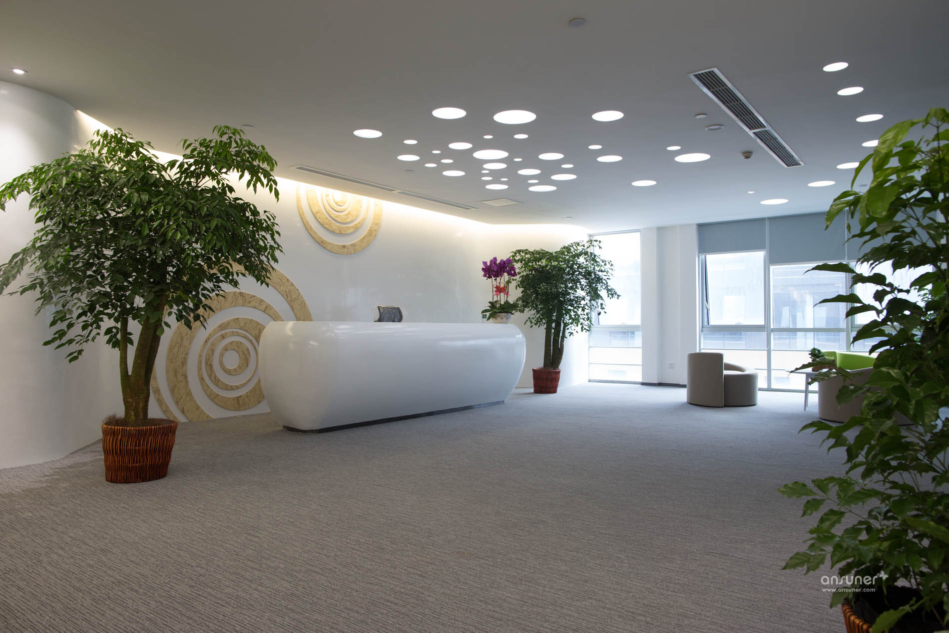 接待台后面的装饰墙上镶嵌着由小及大的圆环,彷如那神秘幽深的银河,是探索的方向。类比的“星空”、“银河”,在形式上做到了既不直白同时又能反映企业相应的特点,增强了对于新利·(体育)在线官方网站的体现。